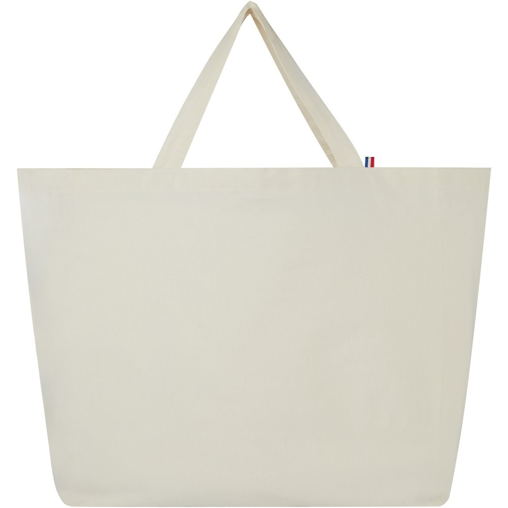 Denne mulepose er lavet af 100 % genbrugsmaterialer. Muleposen er lavet, så den tåler brug i hverdagen, og er velegnet til at bære rundt på tunge bøger eller dagligvarer. Den 200 g/m² genanvendte bomuld/polyester blanding sikrer holdbarhed og giver muleposen en bæreævne op til 14 kg. Metervaren er fra Asien, men vævning og fremstilling sker i Frankrig.