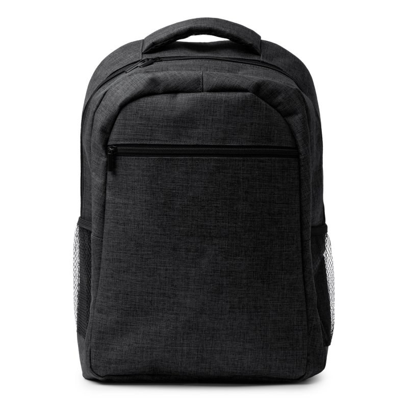 Computer backpack made of RPET 600D with melange finish. Large main compartment with internal pocket for 15" laptops. Front zip pocket. Side pockets. Padded shoulder straps and back panel. Capacity 20L.