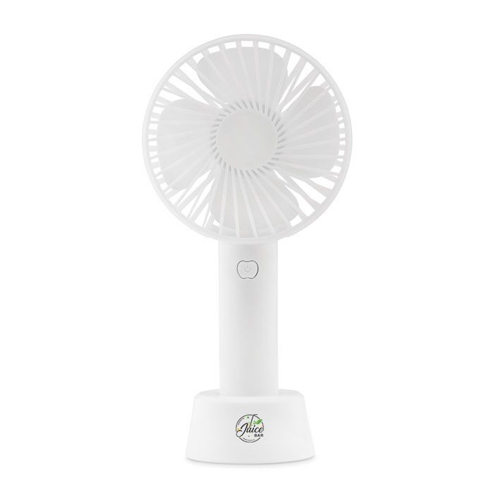 Lille bærbar ventilator, med ekstra stativ så det kan stå på et bord.