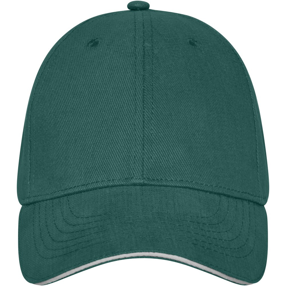 Darton 6 panel sandwich cap har en forbøjet visir med et stilfuldt sandwich design, der ikke kun giver klassisk æstetik, men også afgørende solbeskyttelse. De broderede øjer sikrer optimal ventilation, så du kan holde dig kølig og rolig under udendørs aktiviteter. Med en hovedomkreds på 58 cm lover den en behagelig pasform til forskellige hovedstørrelser. Metalspændelukningen giver mulighed for nem og sikker justering. Fremstillet af 260 g/m² kraftig børstet bomuldstwill. Det ideelle tilbehør til afslappede udflugter eller udendørs aktiviteter.