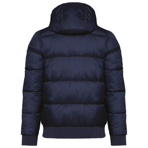 Stand-up collar with a lined, padded and adjustable 3-part hood with stopper.