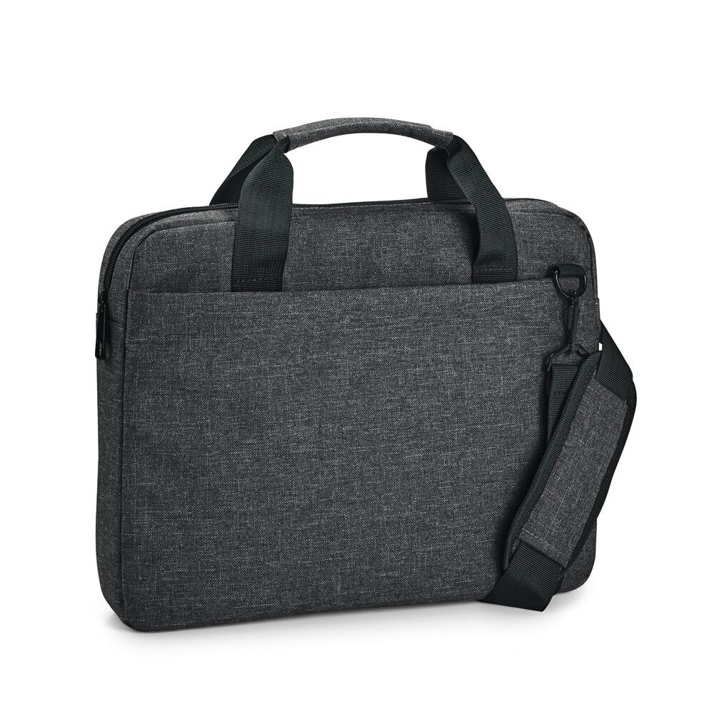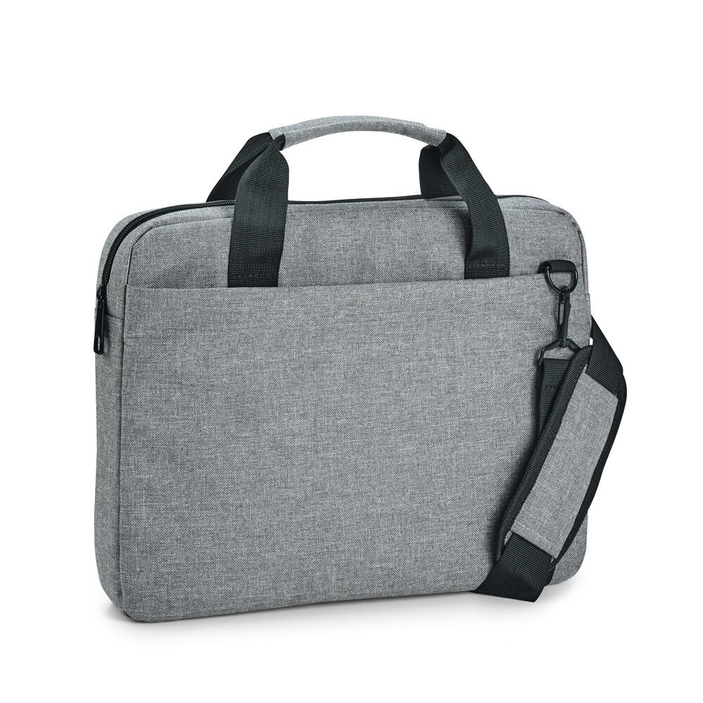 Høj densitet 600D laptop taske med polstret foret rum op til 14''. Den har en forlomme, justerbar skulderrem med polstret forstærkning. Tasken har et trolley bånd. 370 x 280 x 50 mm