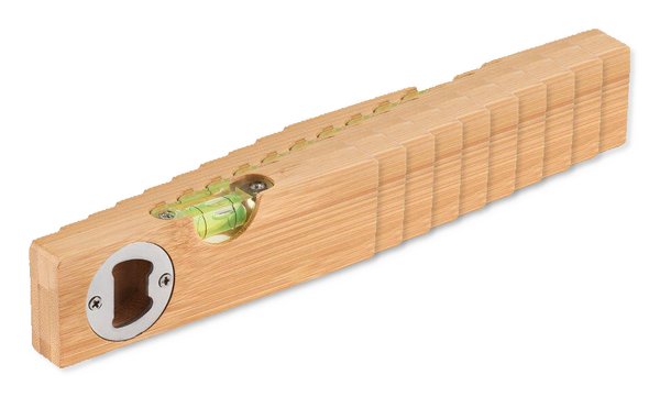 Pakke med 10 GiftRetail MO6495 - Træ - SPIREN vaterpas og flaskeåbner