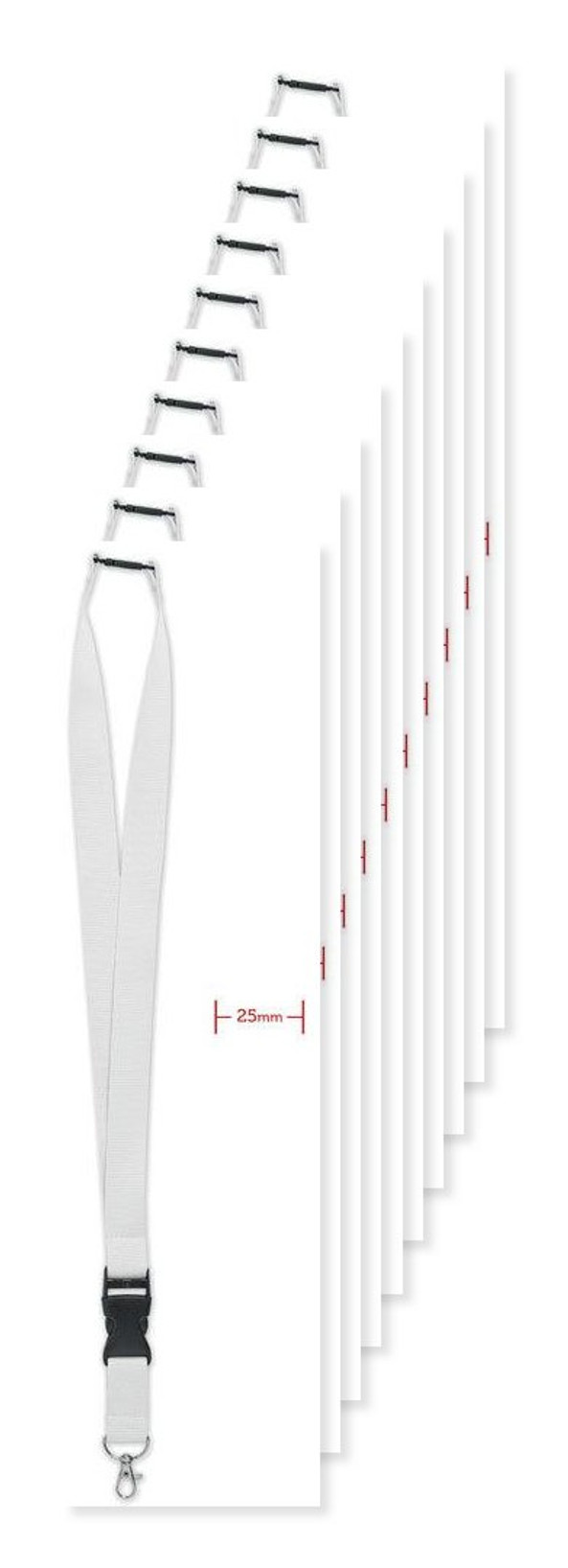 Pakke med 10 GiftRetail MO9661 - Hvid - WIDE LANY Nøglesnor med metalkrog 25mm