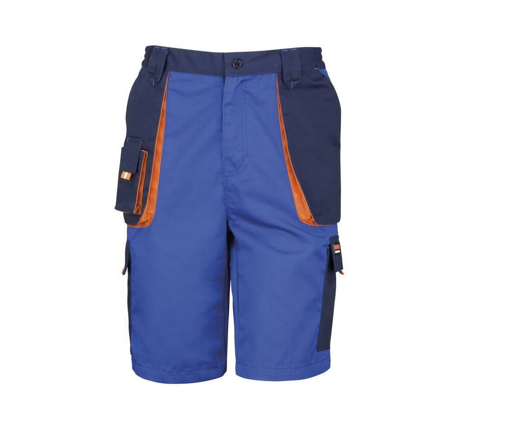 Letvægts, uforede arbejdsshorts. Vandafvisende, åndbar, vindtæt. Knaplukning med lynlås. Cargo lommer til flere brug med reflekterende faner. Delvist elastisk talje. Bæltestropper. Unisex model. Løstsiddende.