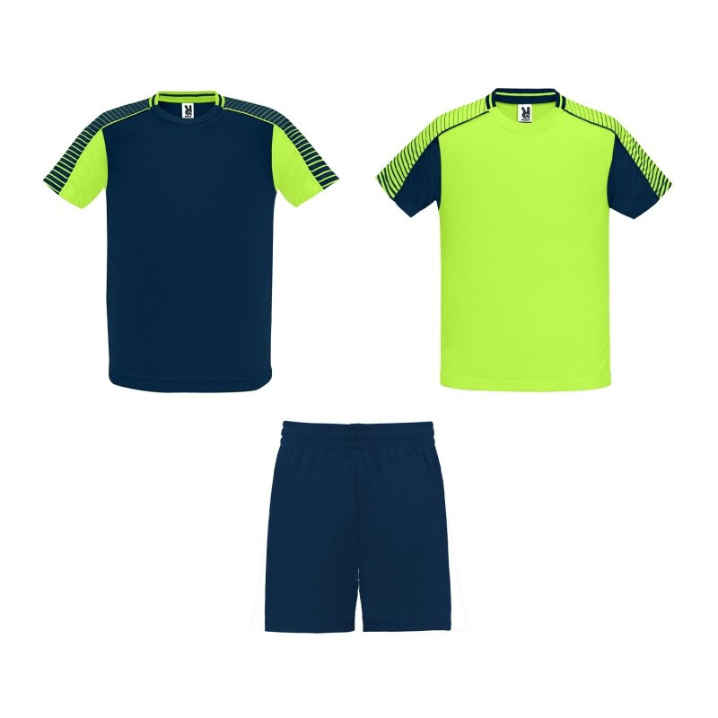 Sættet består af 2 t-shirts og 1 par shorts. Farven på den anden t-shirt er designet omvendt i forhold til den første. Teknisk og åndbart stof. T-shirts med halvraglanærmer med tryk. Rund halsudskæring med tricot på ryggen. Elastisk linning i shorts med matchende indvendig snøre med sikkerhedssyning. Shorts med kontraststribe på siden og slidser i sømmen. Aftagelig etiket.