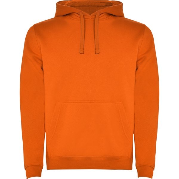 Two-colour hoodie with double fabric, contrasting adjustable drawcord, reinforced covered seams in collar and kangaroo style pocket.