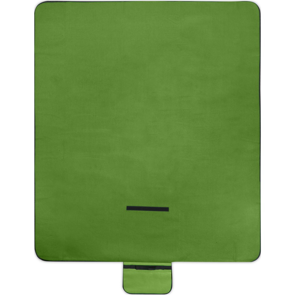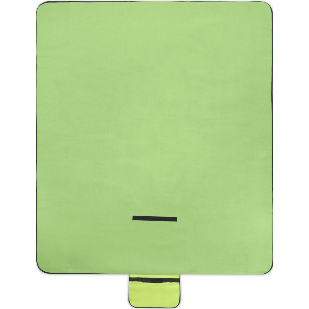 Vandtæt 140 g/m2 picnictæppe fremstillet af genvundet PET plast, hvilket gør det til et ansvarligt valg. Når tæppet er foldet og sikret, er det let at opbevare og bære med det medfølgende bærehåndtag.