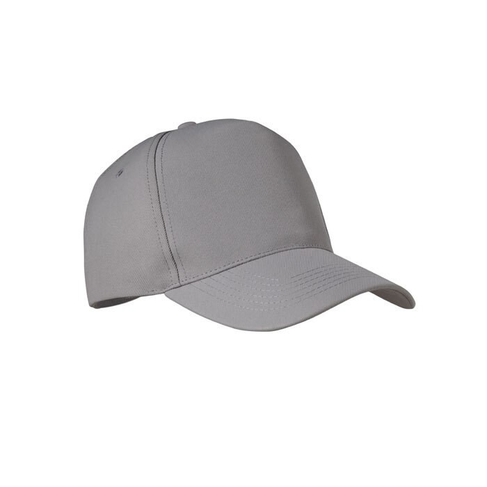 Baseballkasket med 5 paneler i RPET polyester 210 gr/m2 med sølvstålspænde.