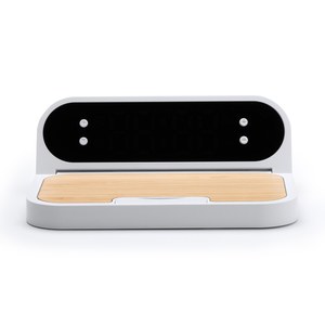 This charger combines the natural beauty of bamboo with the strength of recycled ABS, offering an eco-friendly solution.In addition to its 10W wireless charging function, this charger also has a clock function.