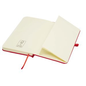 Spectrum Plus hardcover notesbog i A6 og med afrundede hjørner er ikke kun uundværlig på kontoret, men er også en fantastisk mulighed for at promovere dit brand. Notesbogen af pap har blødt omslag og 80 linjerede cremefarvede ark på 70 g/m², perfekt til at nedskrive hurtige ideer eller lange noteringer. Notesbogen har en løkke til en pen, elastiklukning, båndmarkør og harmonikalomme.