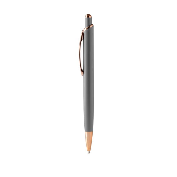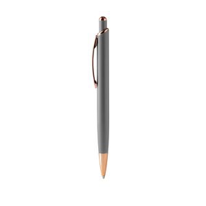 Push ball pen with matt metal structure with copper finish details.