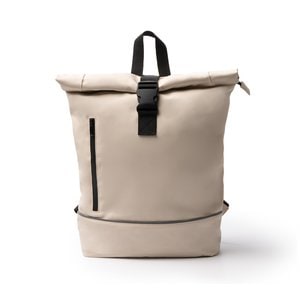 Stamina MO1923 - Beige - VALDEZ Backpack made from PU and 210D RPET with an extendable main compartment featuring a zip closure and buckle