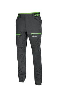 Stretch work trousers in U-4 fabric, jogging cut, elasticated waist and cuffs for a better fit.