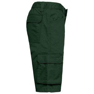 2 open front pockets including 1 coin pocket and 2 gusseted side pockets with flap with velcro fastening.
